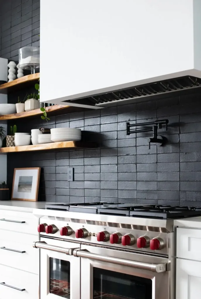 A black accent tile backsplash brings modern edge and drama to your kitchen. Matte finishes feel sleek and industrial, while glossy finishes add glam.