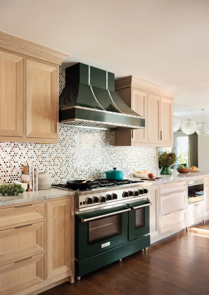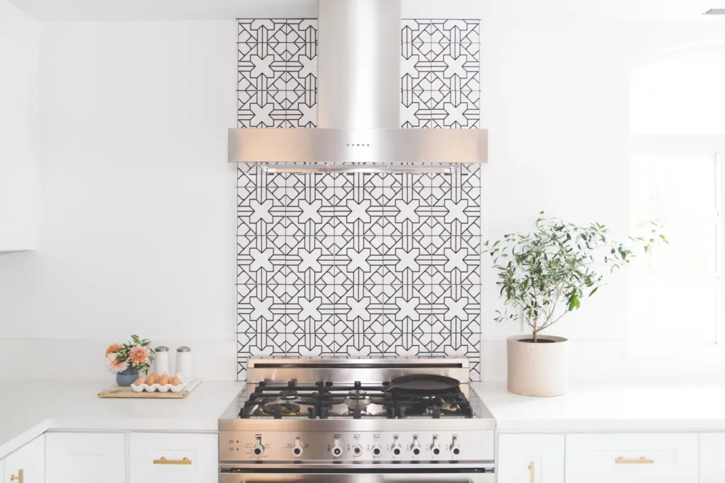 Try them with marble-look tiles for a high-end aesthetic, or go for bold jewel tones for a playful feel. The pattern works especially well as a stove backsplash centerpiece. It’s classic yet creative.