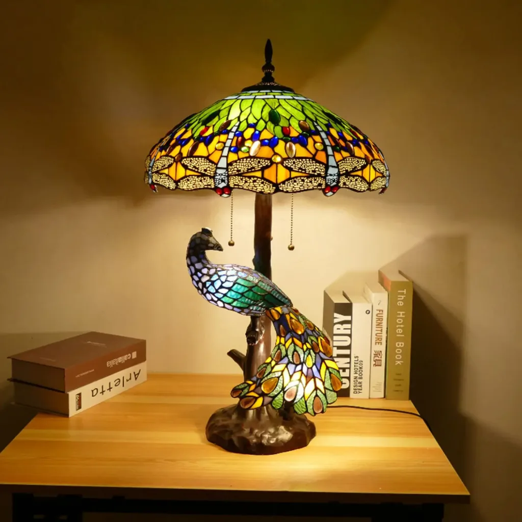 Peacocks were a recurring motif in Art Deco design, symbolizing elegance and luxury. Lamps featuring peacock feather patterns or sculptural bases inspired by the bird bring a whimsical touch.