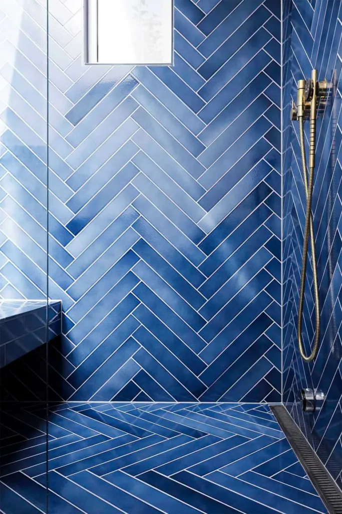 Cobalt blue ceramic tiles have a jewel-like quality that instantly elevates a bathroom. Using them for shower walls creates a luxurious and dramatic statement. The glossy finish makes water bead off easily, adding both beauty and function.