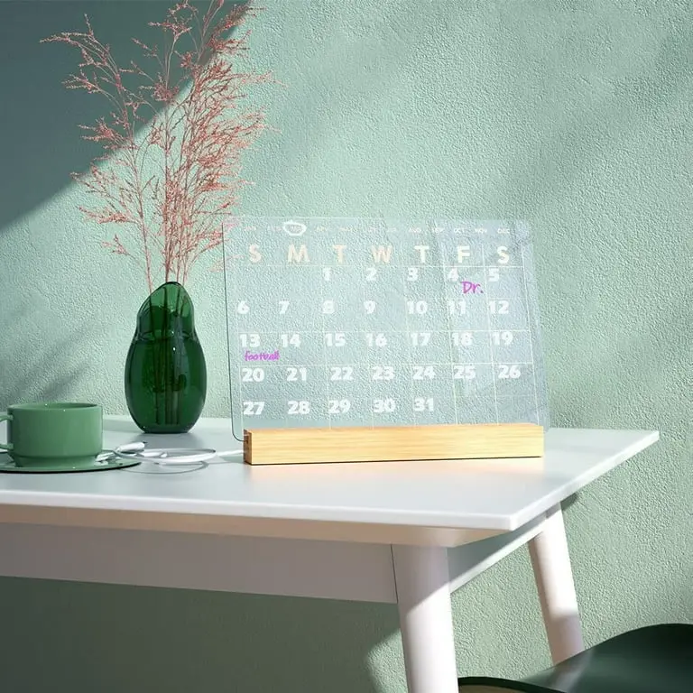 Ditch the corporate wall calendar and opt for a chic desk calendar or acrylic wall version. Not only does it help you stay organized, but it also becomes part of your decor.