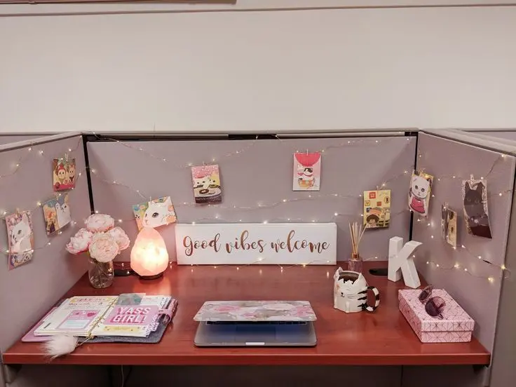 String fairy lights along the edge of your cubicle wall for a soft, cozy glow. It makes early mornings and late evenings feel less harsh.