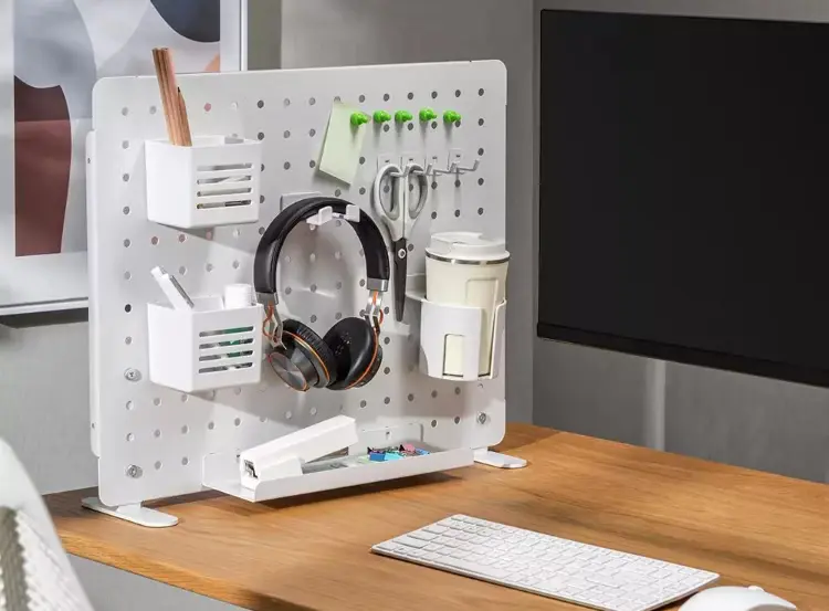 If your cubicle walls allow, add adhesive hooks to hang your bag, jacket, or headphones. This clears desk space and keeps essentials within reach.