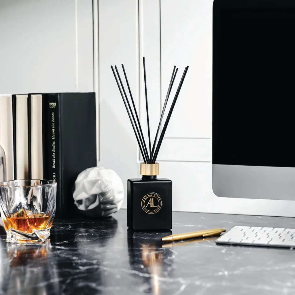 Choose sleek glass bottles or ceramic diffusers to double as decor. Just keep scents light and fresh so they don’t overwhelm your coworkers.