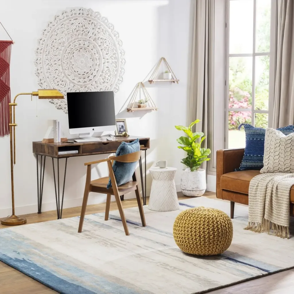 Yes, a small rug under your desk can make your cubicle feel cozy and grounded. Go for washable versions in subtle patterns like stripes or geometric designs.