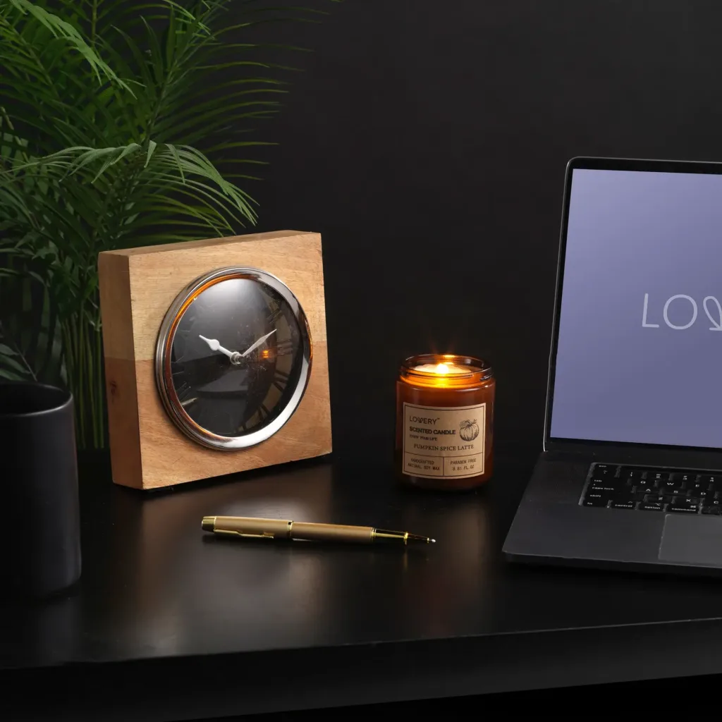 Few things set the mood faster than a candle. Choose scents like pumpkin spice, cinnamon, apple cider, or vanilla chai. The flicker of the flame paired with the cozy aroma instantly makes your desk feel seasonal.