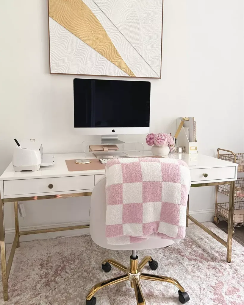 A cozy desk setup isn’t just about what you see—it’s about what you feel. Adding a plush chair cushion, a chunky knit throw, or even a soft rug underfoot can make your office instantly more inviting.