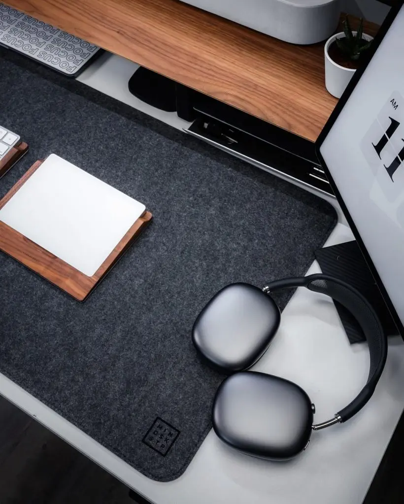 A desk mat defines your workspace while protecting surfaces. Felt or leather mats add a tactile layer that makes typing more comfortable.